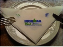 This was the first year the town had hosted an Ironman 70.3. The atmosphere in the town was buzzing. There were Ironman banners decorating the town, and even the restaurants had got into the spirit of things (see picture right)!