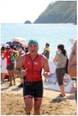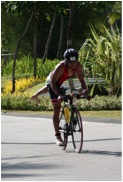 T1 – it was a 50m beach run from beach to T1, the sand is so hot, I had to tip toe going to T1. On route I saw my family cheering on with the smile on their faces and I smiled back and gave them a thumbs up and told them I have lost my watch, my sister run towards me and yelled Kuya you can do it! I smiled back and pushed ahead.