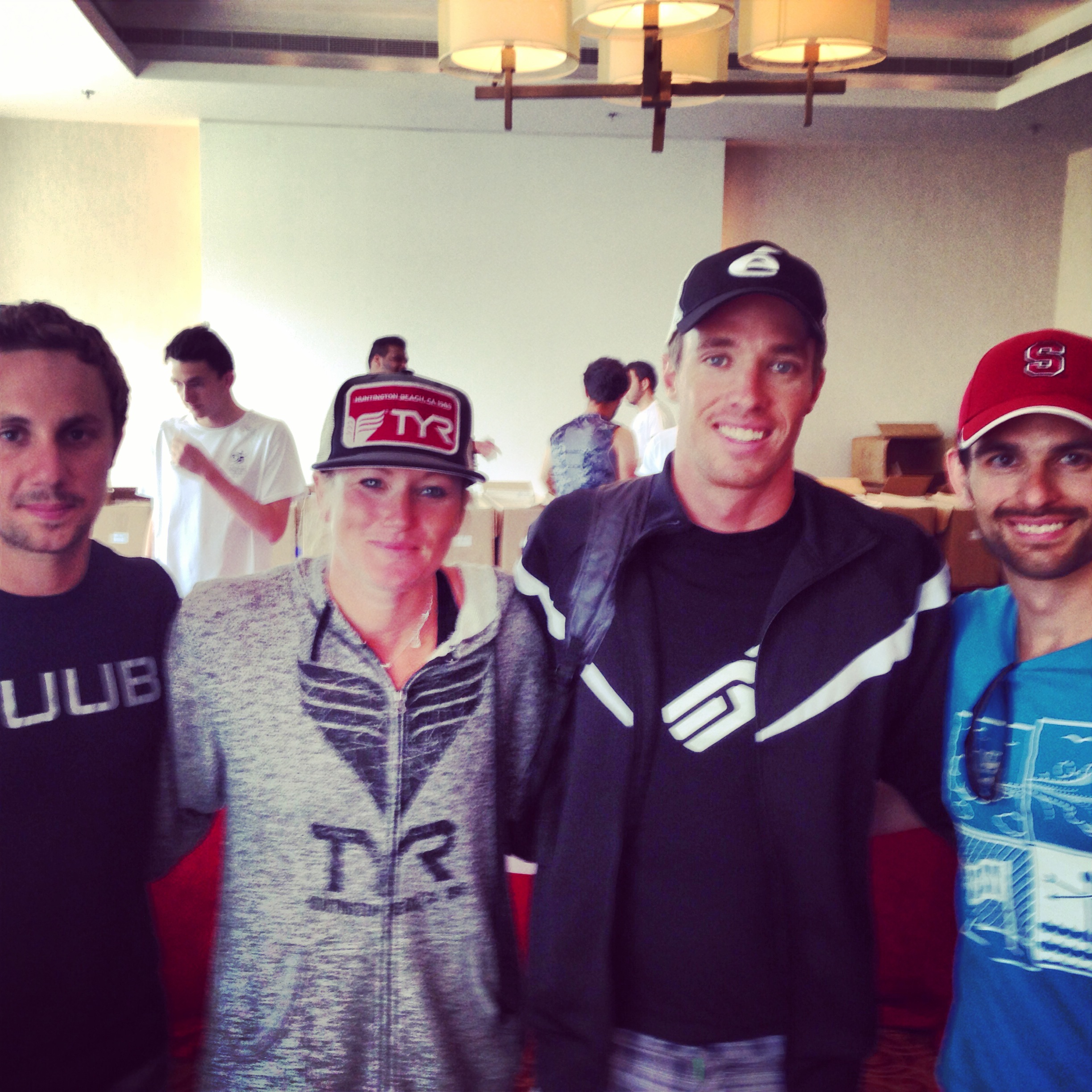 One of the exciting features of the Abu Dhabi Triathlon is the fact that it attracts a field of high profile elite athletes, with the beauty of triathlon being that we get to race alongside, meet, greet and enjoy the event with our sporting heroes. As a Brit the chance to even see, let alone meet, the Olympic Gold medalist, Alistair Brownlee, and his brother, Bronze medalist, Jonny, was incredible. Surreal but awesome nonetheless. But it was even better than that! There were legends of our sport at every turn and by the end of the weekend it felt like a completely normal thing to just, you know, hang out with people like Jodie Swallow, James Cunnama, and other tri big-wigs. One of the first things I did upon arriving at registration was purchase two official race shirts: one to wear and one to ask pros to sign; quite a cool keepsake from the event. One of the pleasures of conversing with the elite athletes is that you quickly realise that they too have to deal with many of the same challenges and set-backs that us age-groupers do, a realisation that can only ever help to allay any last minute nerves that might be hanging around. The buzz associated from their presence at the event also just added a real sense of electricity to the entire weekend and heightened the excitement felt by all.