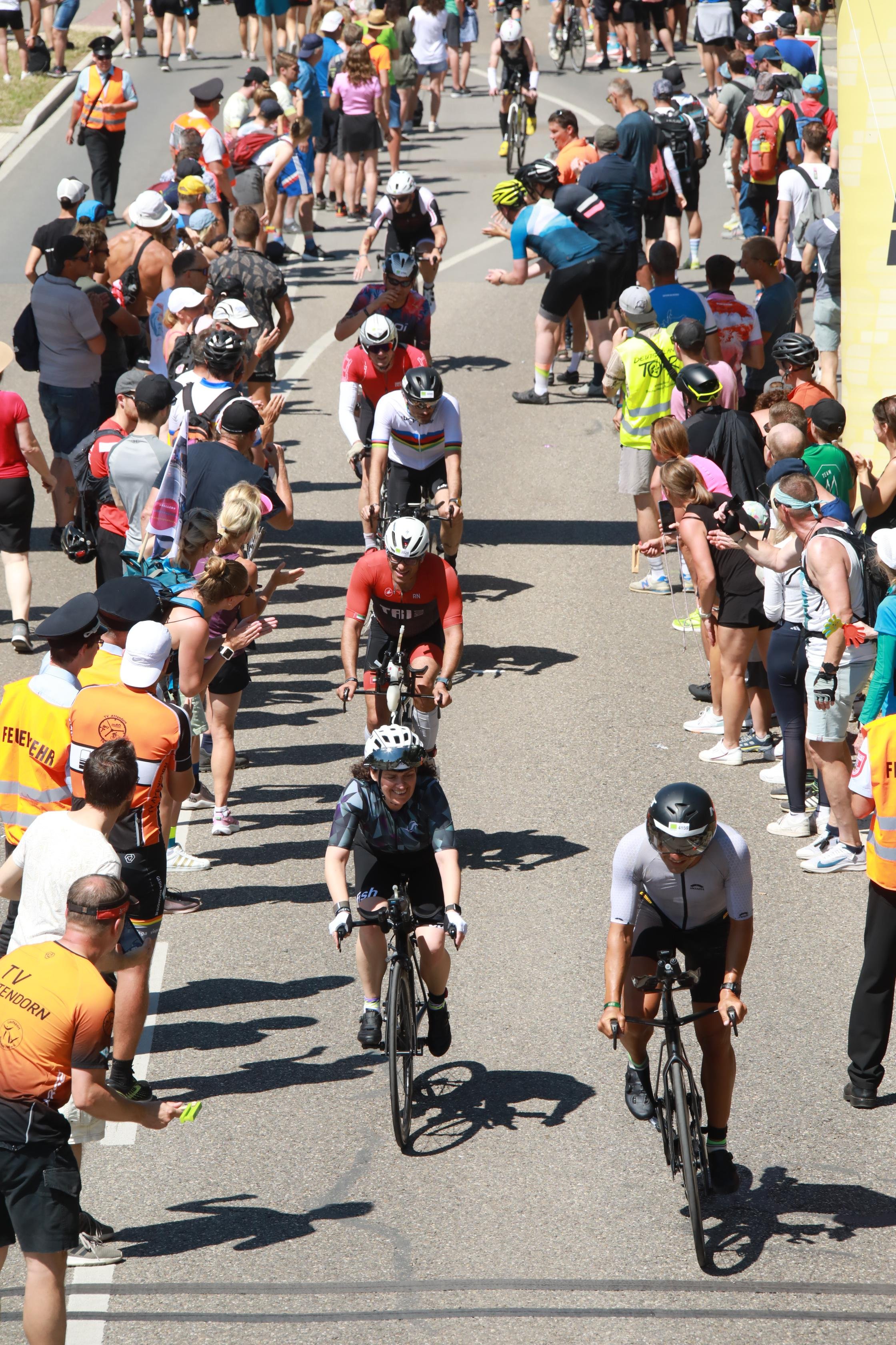 Despite not knowing anyone among the spectators, I was amazed by the encouragement I felt as I was riding up the challenging uphill sections, particularly the first ascent of Solar Hill. The sight of people lining up, creating a narrow path that allowed only one bike to pass at a time, created an indescribable and incredible sensation. It was a unique feeling!!