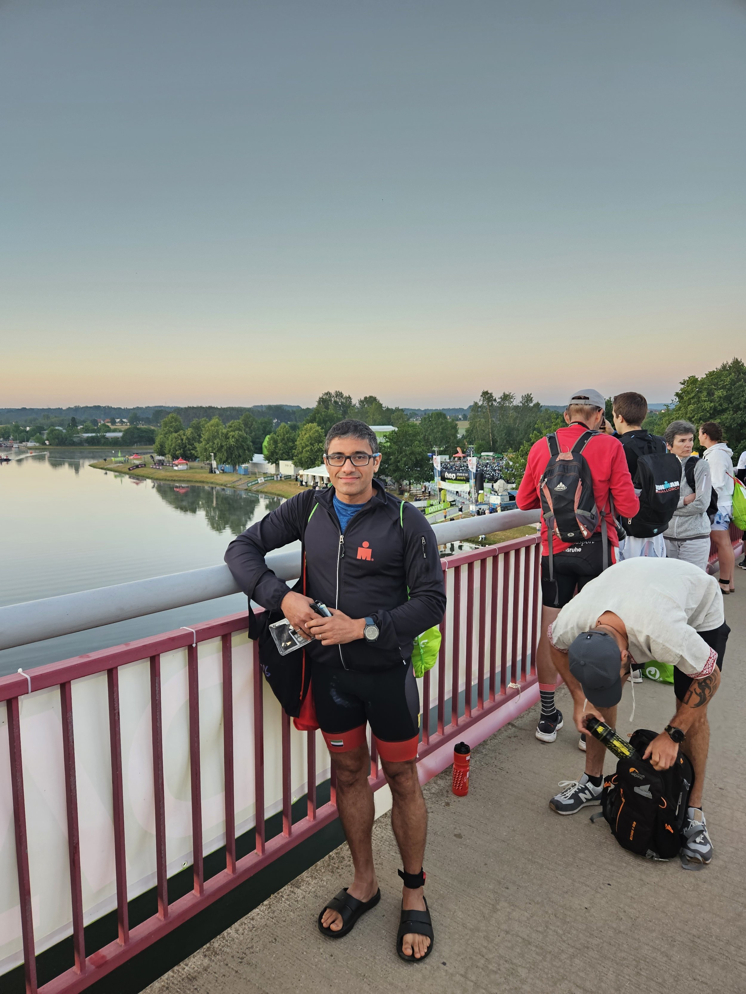 As the gun went off, I turn on my Garmin and off I am to start one of the most challenging experiences of my life! The swim leg took place in the Main-Danube Canal, a picturesque setting that added to the allure of the race. Despite the chaos and jostling in the water, I focused on finding my rhythm and maintaining a steady pace. I was able to take over some of the slow athletes that went into the water in batches before me, but stayed in control.